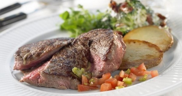 m/tomatsalat, ristedekartofler og whiskeysauce...